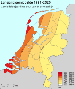 - Nederland kent gemiddeld tussen 1.500 en 1.800 zonuren per jaar.